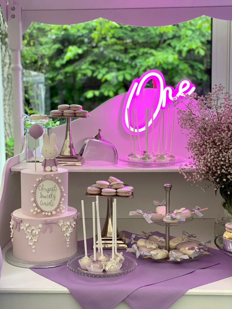 W naszej ofercie znajdziesz szeroki wybór monoporcji, babeczek, makaroników i innych mini deserów, które tworzymy z dbałością o każdy szczegół. Korzystamy z własnych naczyń i elementów dekoracyjnych, które dobieramy indywidualnie do stylu wydarzenia – od rustykalnych przyjęć w stodole po eleganckie gale. Współpracujemy również z florystką, co pozwala nam zadbać o spójną i estetyczną oprawę kwiatową, idealnie dopełniającą całość słodkiego stołu.